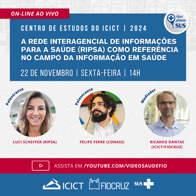 Leia maisCentro de Estudos do Icict/Fiocruz aborda a Rede Ripsa como referência da informação em saúde A Rede Interagencial de Informações para a Saúde (Ripsa) como referência no campo da informação...